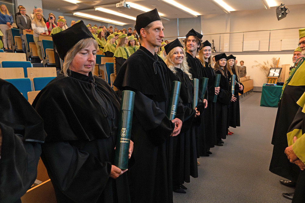 W dalszej kolejności Pan Rektor wraz z dr hab. Joanną Izdebską, prof. UG, Prodziekan ds. Nauki, wręczyli dyplomy doktora habilitowanego oraz dyplomy doktora nauk biologicznych.