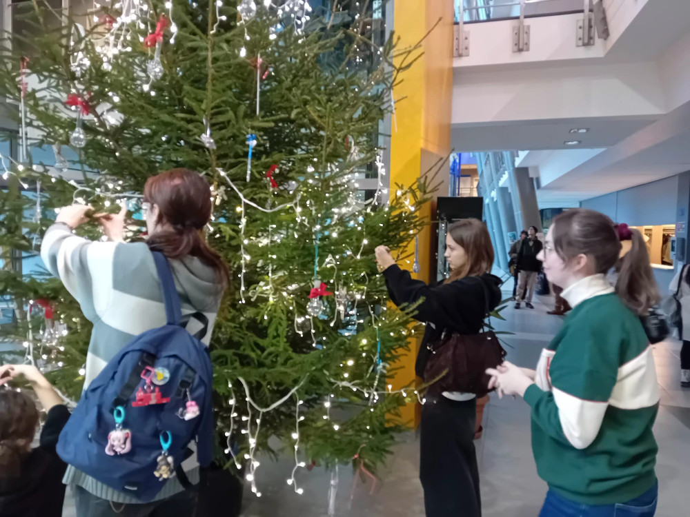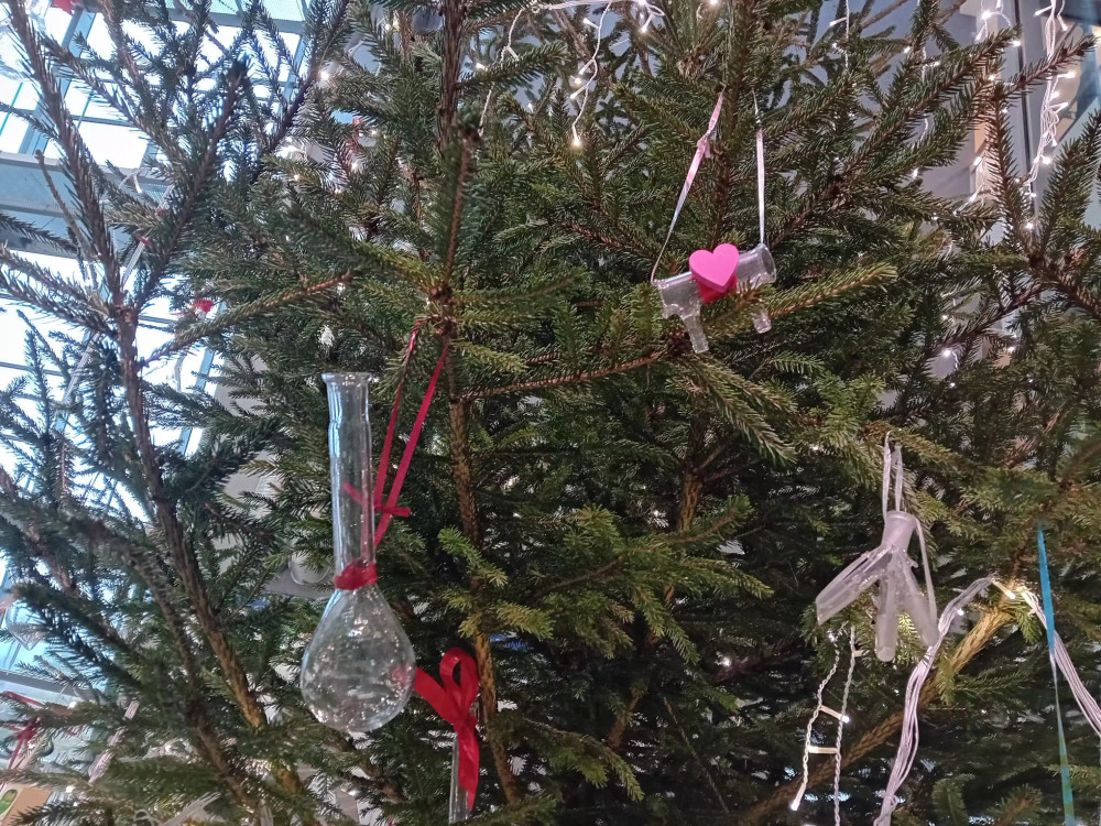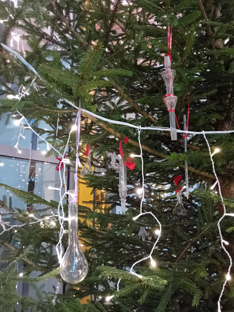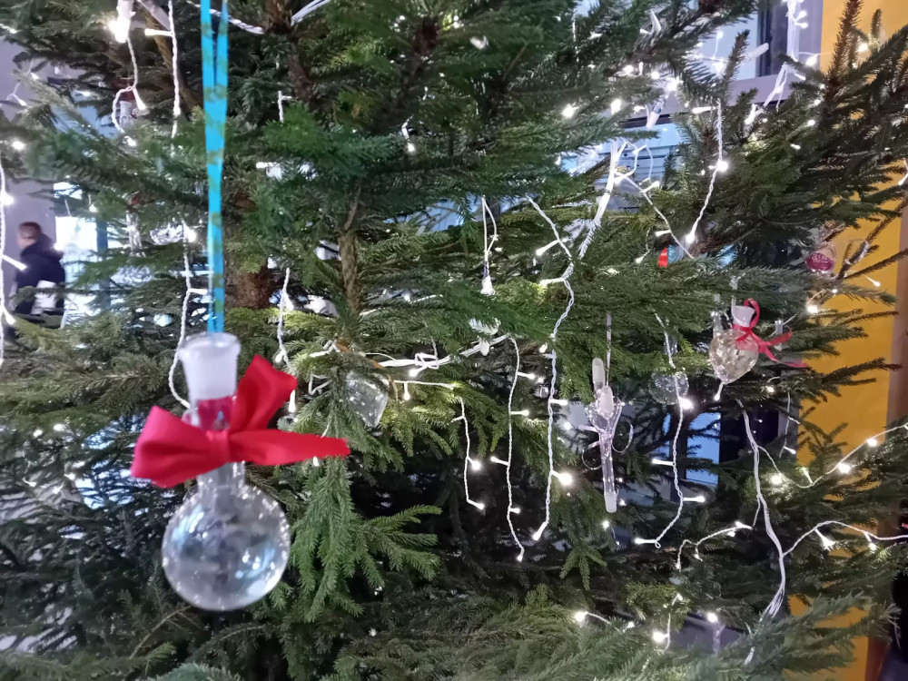 Dzięki zaangażowaniu studentów i doktorantów naszego Wydziału, eksperymentalna choinka w holu głównym jest gotowa na Święta :)