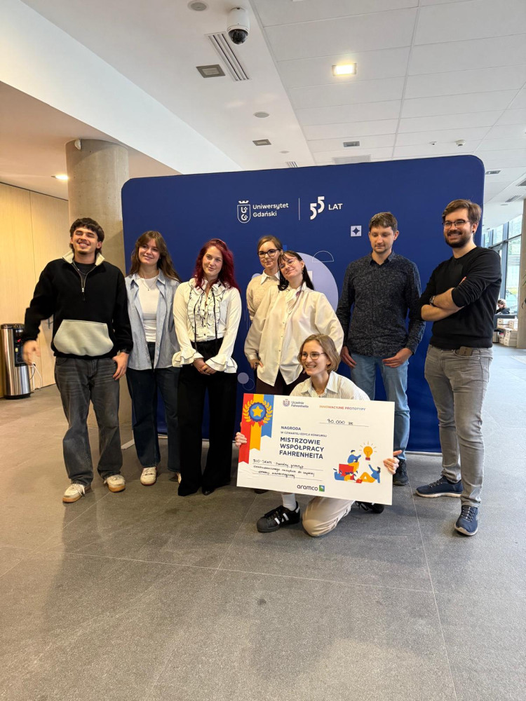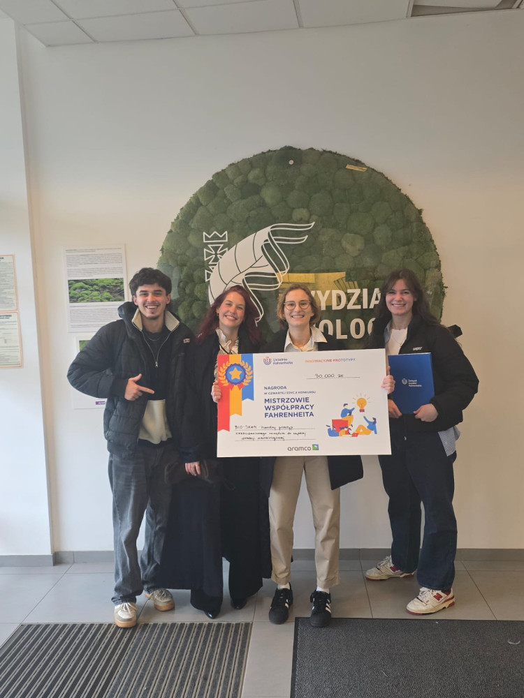 Studenci z SKN Bakterioza, które działa w Katedrze Mikrobiologii Uniwersytetu Gdańskiego razem ze studentami KN RedOx z Politechniki Gdańskiej połączyli siły i wiedzę z zakresu mikrobiologii oraz elektrochemii i wzięli udział w IV edycji konkursu Mistrzowie Współpracy Farenheita. Zaproponowali Projekt pt. „BIO-SKAN – przenośny prototyp elektrochemicznego narzędzia do szybkiej detekcji mikrobiologicznej”, który złożyli w kategorii innowacyjne prototypy. Owoc współpracy obu kół zyskał uznanie komisji konkursowej i zakwalifikował się do ścisłego finału, który miał miejsce 8 grudnia 2025 r. Przed Kapitułą Konkursową Projekt zaprezentowały reprezentantki obu kół – Oliwia Janiszewska z SKN Bakterioza oraz Klaudia Reczek z KN RedOx. Kapituła konkursowa wyłoniła trzech laureatów wśród których znalazł się Projekt zaproponowany przez Bakteriozę i RedOx. Każdy ze zwycięskich Projektów otrzymał nagrodę główną w wysokości 30 000zł na realizację projektu. Serdecznie gratulujemy!