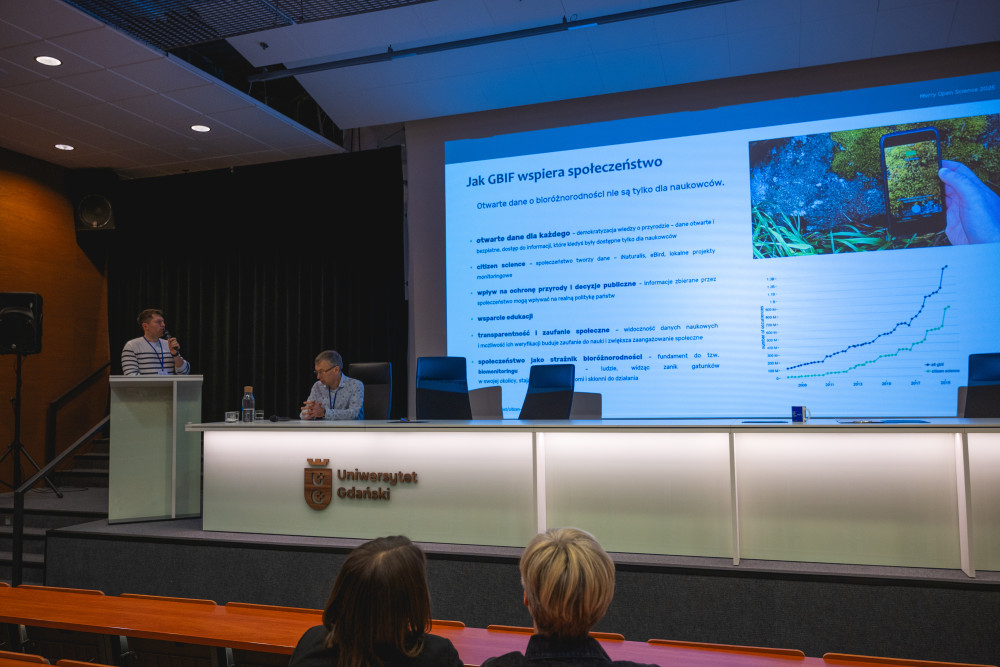 Wśród prelegentów znaleźli się również pracownicy Wydziału Biologii – dr Sławomir Nowak, Joanna Korybut-Orłowska oraz Katarzyna Wszałek-Rożek, którzy przygotowali prezentację pt. Otwarte dane o bioróżnorodności: jak GBIF wspiera naukę, ochronę przyrody i społeczeństwo. Podczas wystąpienia przybliżono ideę GBIF (Global Biodiversity Information Facility) oraz rolę, jaką to globalne repozytorium odgrywa w gromadzeniu i udostępnianiu danych o bioróżnorodności.