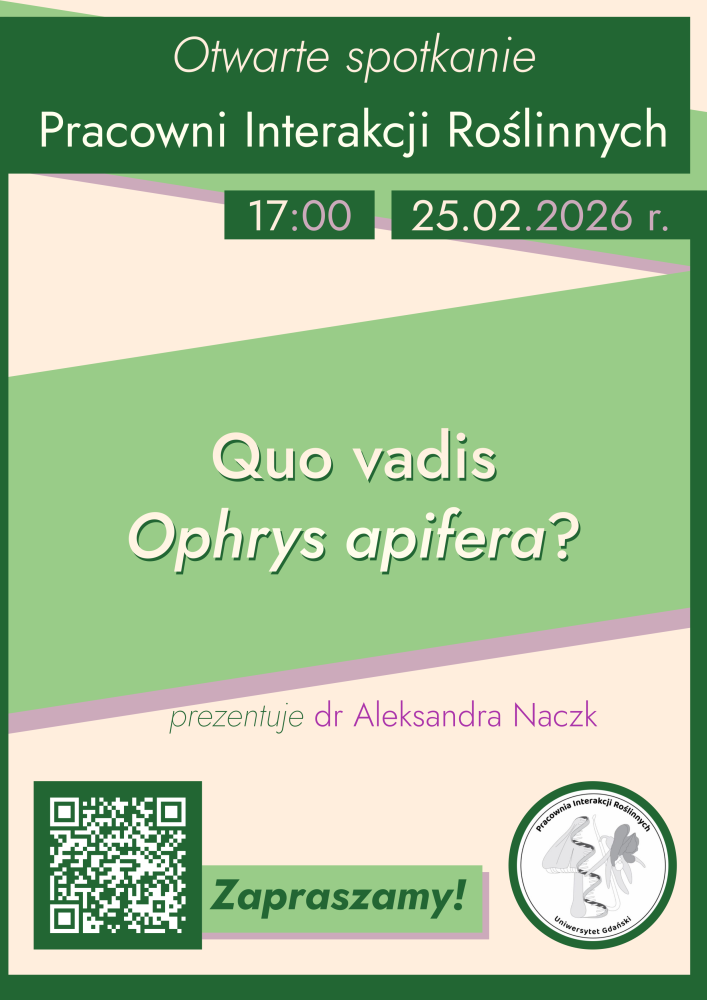 Już w najbliższą środę 25.02.2026 r. o godz. 17.00 odbędzie się otwarte seminarium, podczas którego dr Aleksandra Naczk wygłosi referat pt. Quo vadis Ophrys apifera?