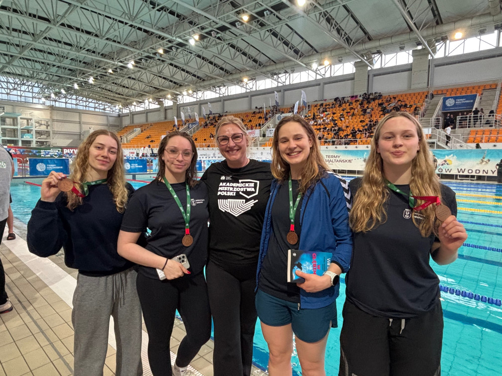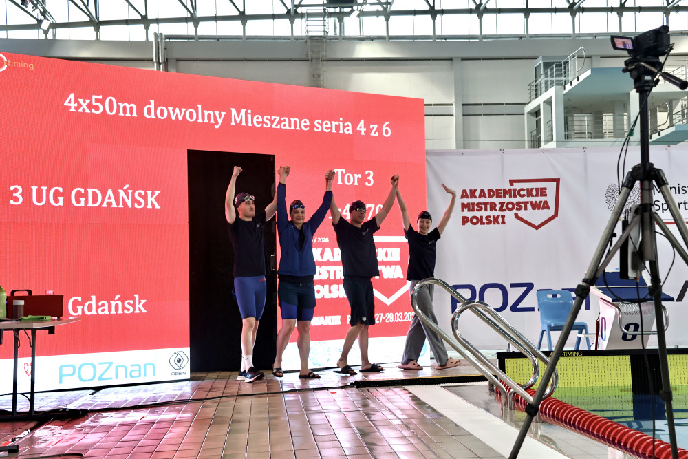 W ubiegły weekend 27-29 marca w Poznaniu odbyły się Akademickie Mistrzostwa Polski w Pływaniu, gdzie ścigały się 89 uczelnie wyższe z całej Polski. Spośród tysiąca pływaków, Uniwersytet Gdański reprezentowała drużyna 20 zawodników pod kierownictwem trenerki mgr Anny Szargiej, w tym doktorantka czwartego roku Szkoły Doktorskiej przy Wydziale Biologii, mgr Aleksandra Zalewska. #UGteam wrócił z kilkoma krążkami i osiągnięciami indywidualnymi, a sztafeta kobiet na 4x50m stylem zmiennym w składzie Szargiej, Zielińska, Woźnica, Zalewska wywalczył podium jako trzeci Uniwersytet w Polsce. Gratulacje dla ekipy AZS UG za wysoką pozycję w klasyfikacji drużynowej i życzymy licznych dalszych sukcesów!